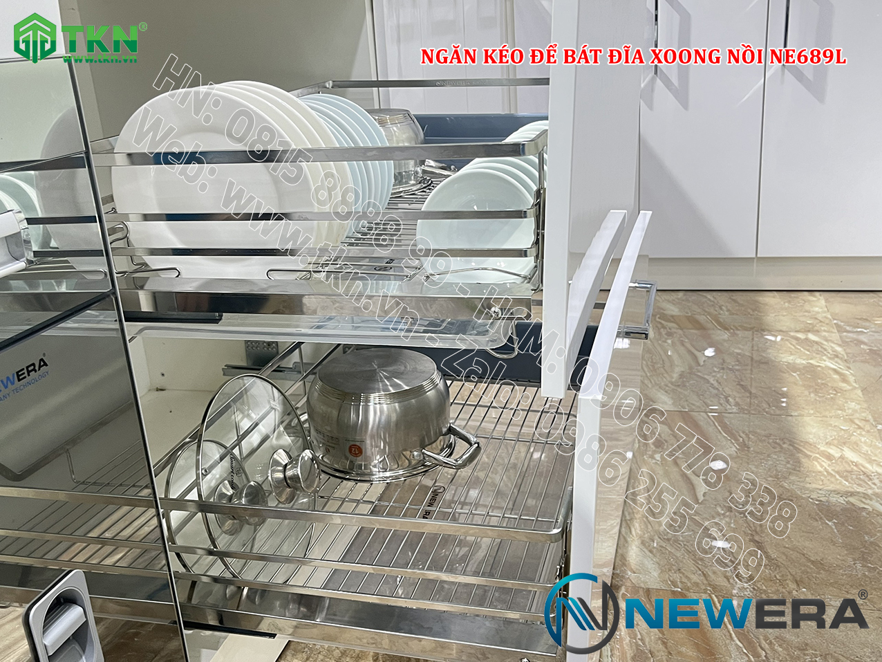 Giá để bát đĩa, xoong nồi NewEra 600mm inox 304 cánh kéo hoặ...