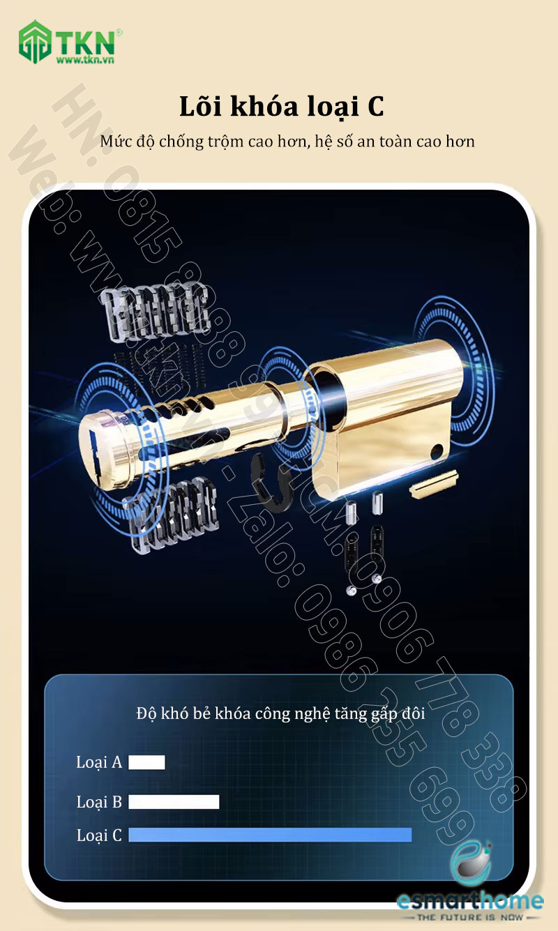Phương thức mở khoá: Vân tay, mật mã/thẻ, chìa khoá, APP