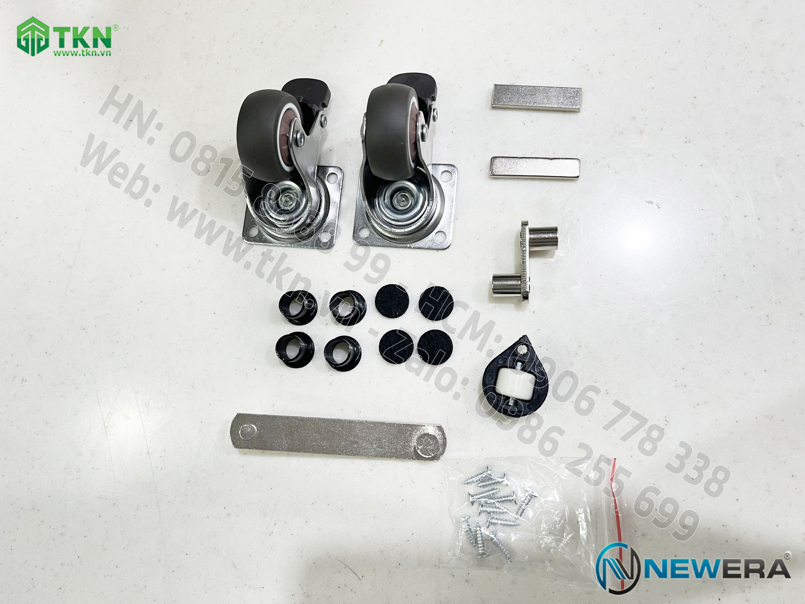 Bộ phụ kiện bàn xoay NE4848.RTC được ứng dụng cho bàn gắn tủ kết hợp xếp gọn linh hoạt với cơ chế xoay 90 độ bởi trục xoay, nam châm cố định và bánh xe. Lắp đặt và sử dụng dễ dàng. Có thể xoay từ 0-90 độ thành 1 chiếc bàn khi có nhu cầu sử dụng, làm việc. Bánh xe xoay 360 độ, yên tĩnh, chống mài mòn, hoạt động trơn tru và linh hoạt hơn. Trục lăn giúp di chuyển trượt nhẹ nhàng, tránh trầy xước tủ.